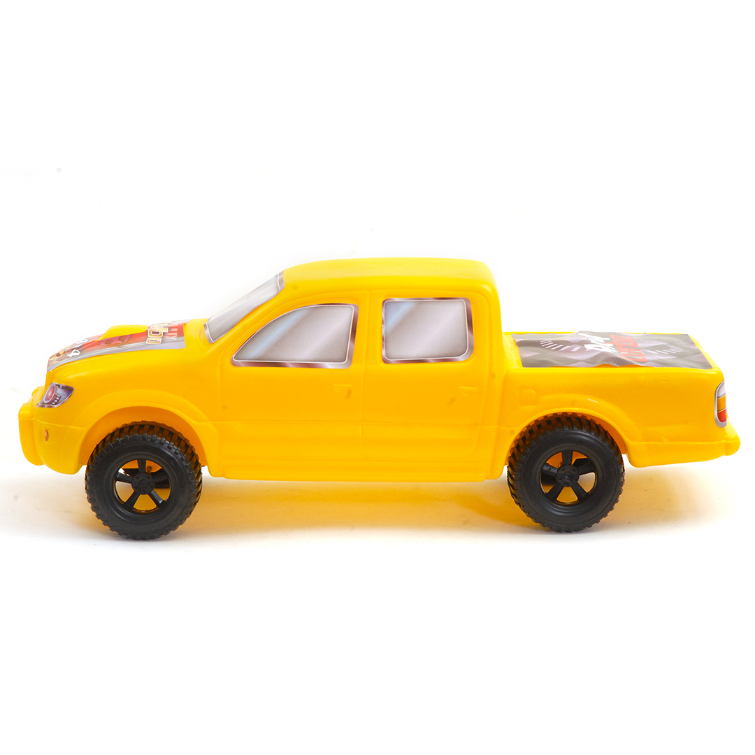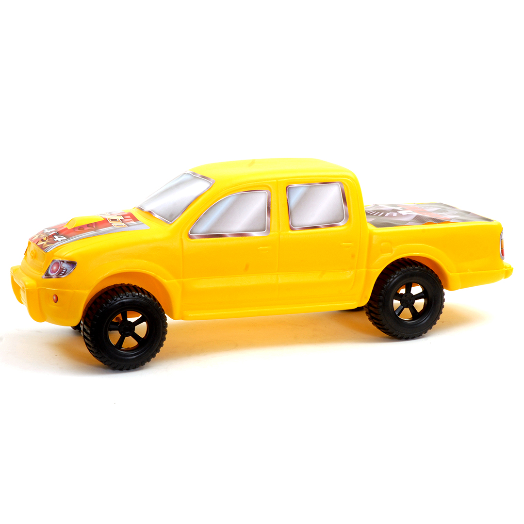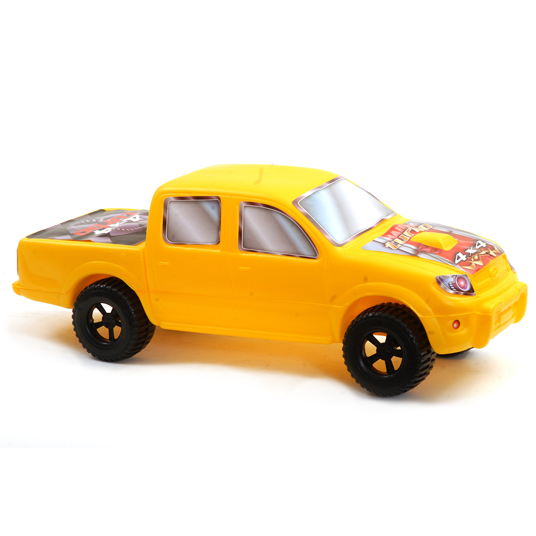 Camioneta Hilux de gran tamaño con calcomanías alusivas, perfecta para juegos de aventura.