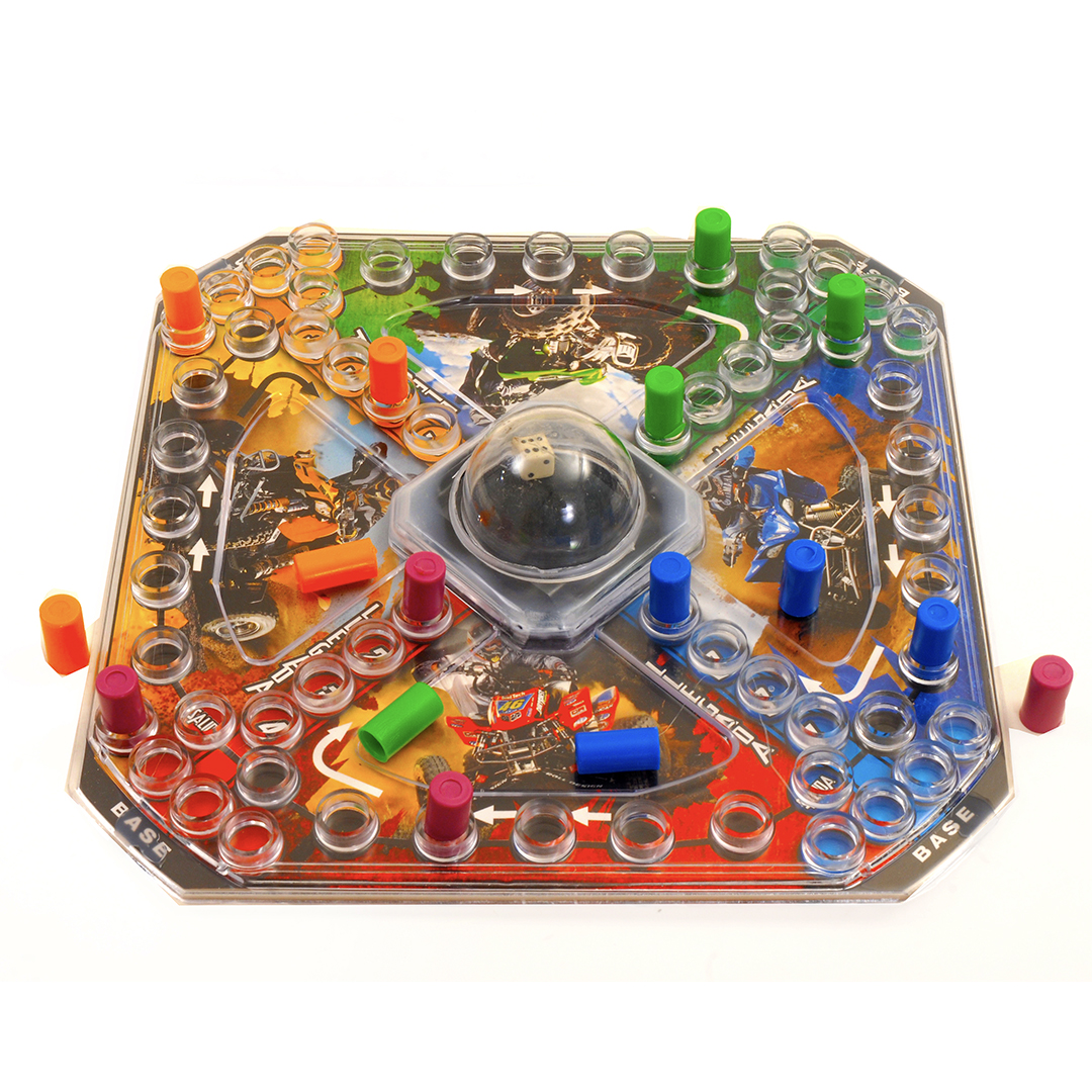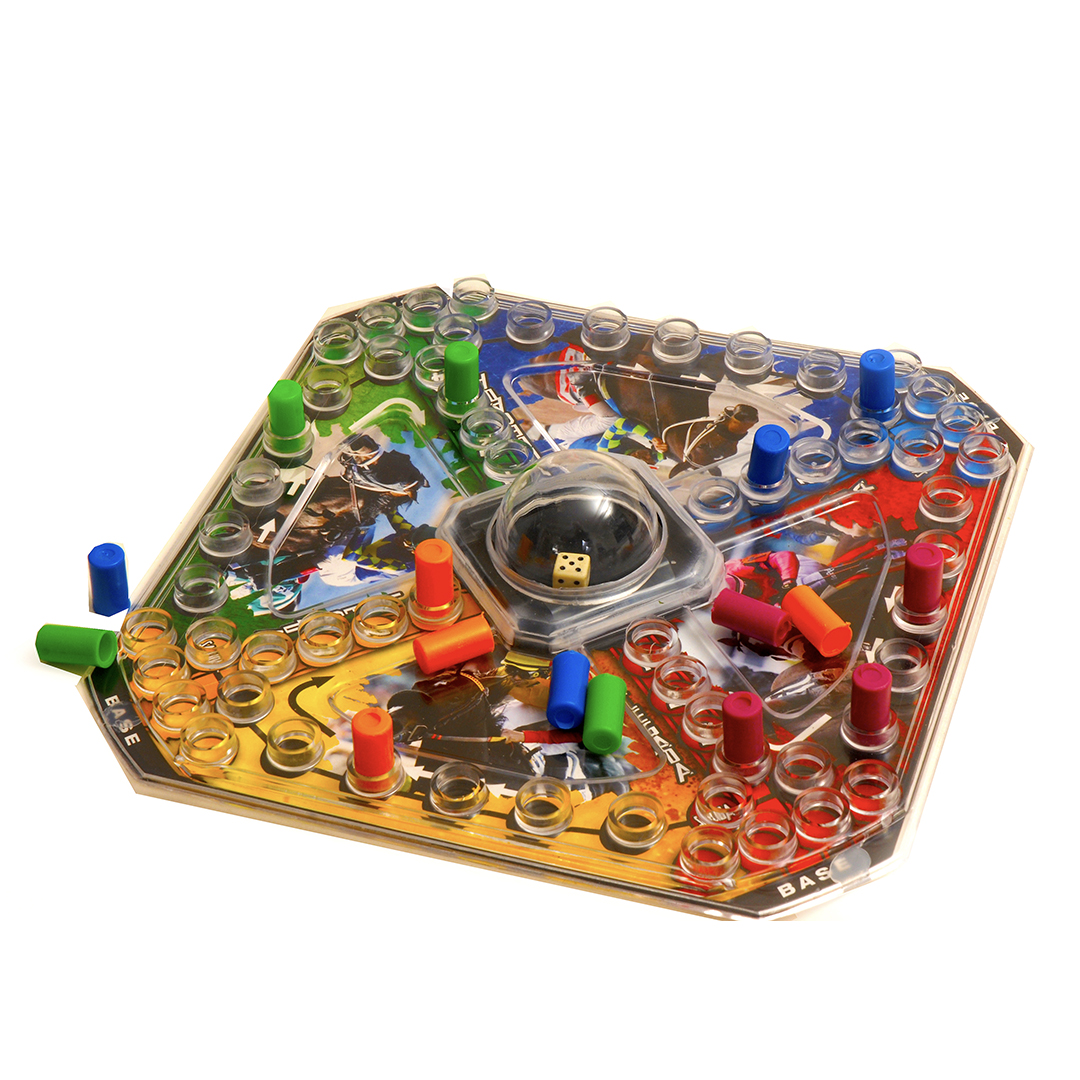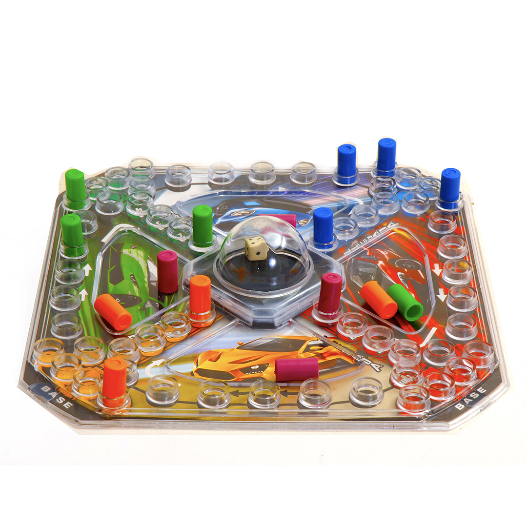 Variante del ludo con mecanismo automático y tres divertidos motivos para elegir.